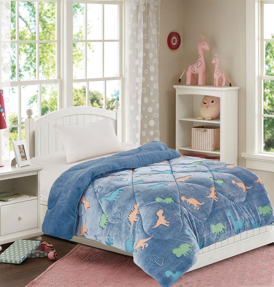 Κουβερτοπάπλωμα μονό εξαιρετικά απαλής υφής με σχέδια που φωσφορίζουν στο σκοτάδι, για να κάνουν τα παιδιά σας ένα χαρούμενο και ανάλαφρο ύπνο.
